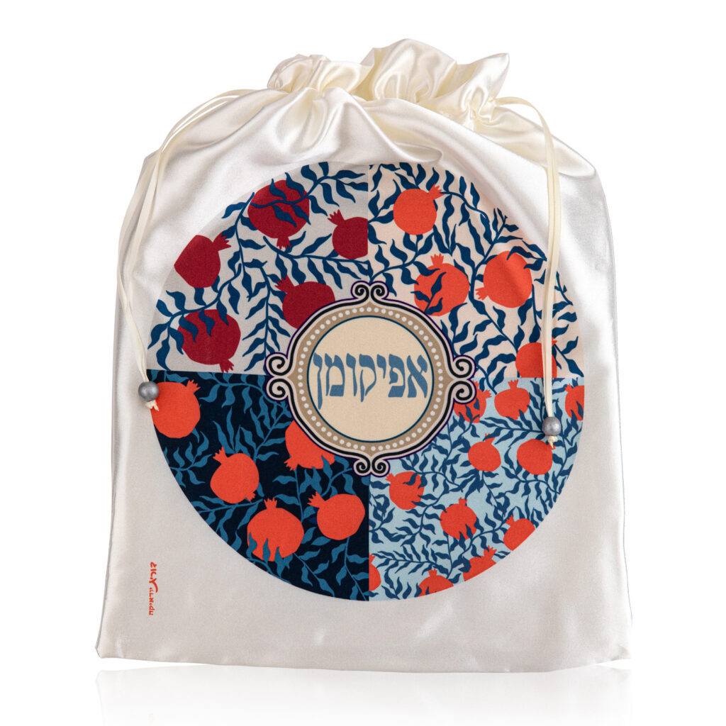 The afikoman bag is a small pouch used to hold the larger piece of matzah that’s broken off and set aside until later in the Seder. This piece, called the afikoman, will be eaten at the end of the meal as the final taste of the evening. In many families, the afikoman is hidden by the kids and the bag makes it easy to transport and conceal. When the children find it, they often negotiate a small prize or gift in exchange for its return, keeping them engaged and awake during the long Seder.