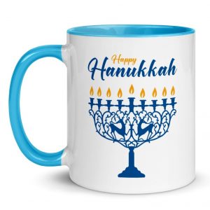 And if you are hosting a meal during the shabbat of Hanukkah, there are also certain items required for shabbat rituals: a kiddush cup, handwashing cup and towels, a challah board with cover and knife, and Birkonim for grace after meals. And don’t forget a festive tablecloth!