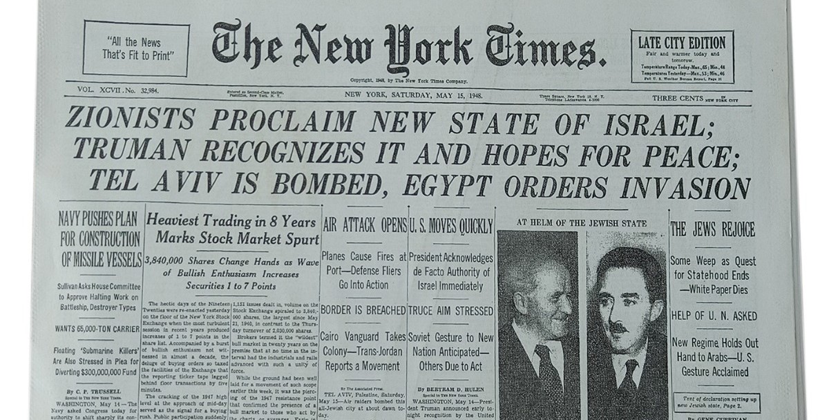 The New York Times front-page coverage of Israel's Independence (a reprint of this historical edition is available for purchase here!)