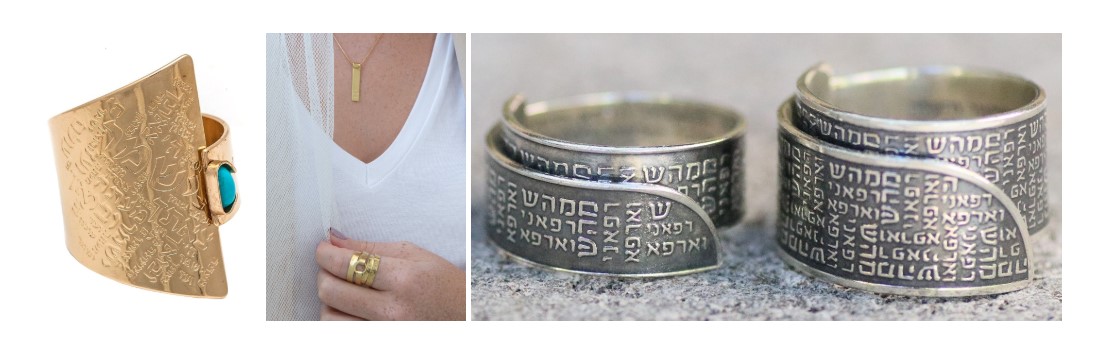 Working with elegant, high-quality gold and silver, the artisans at Hallel meticulously inscribe meaningful Hebrew verses from the Bible, Kabbalah, and other Jewish writings onto timelessly chic rings, bracelets, and pendants. The pieces span many religious themes, from prayers for healing to Proverbs extolling the virtuous Jewish woman.