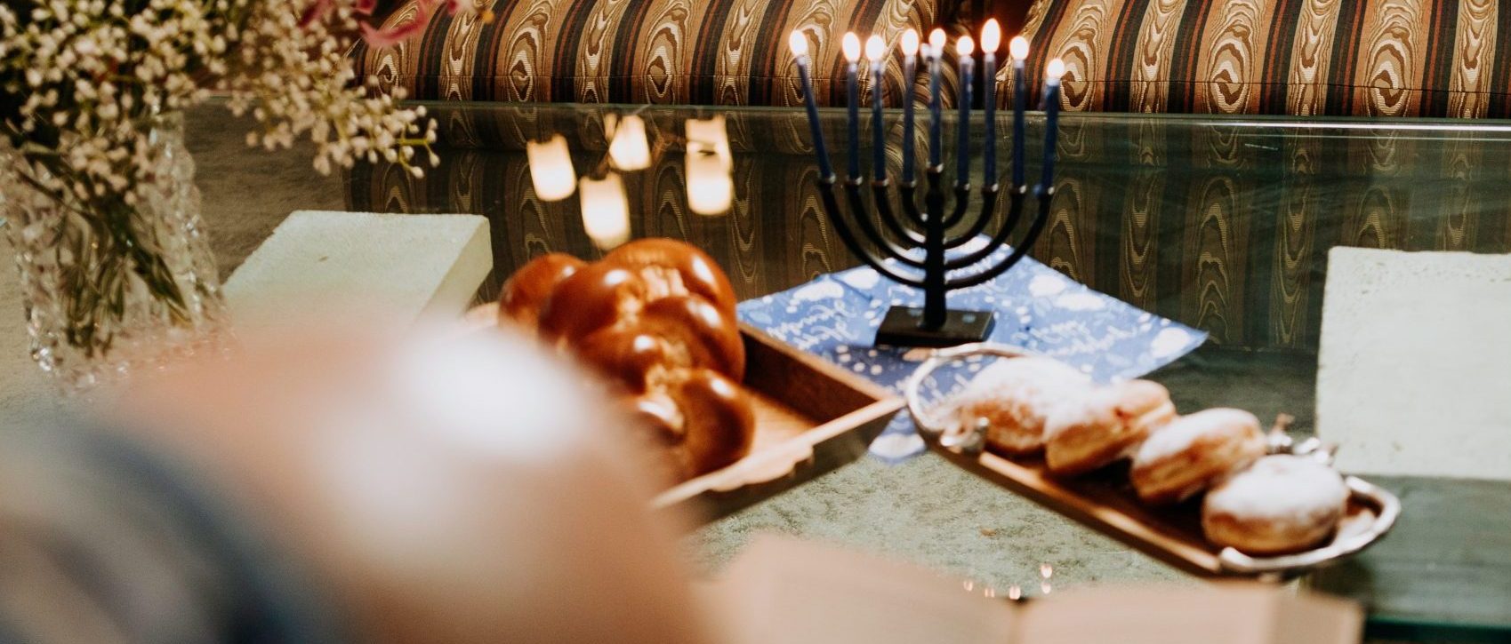 Then you are done, but many people like to sing songs and stay nearby to enjoy the lights. Grab your doughnuts and dreidels!