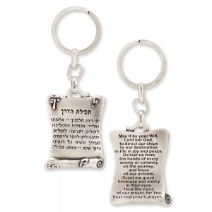 Anyone who travels, even on just long car trips, will appreciate the thoughtfulness of this silver-plated pewter keyring from Israeli design house Danon, featuring the Traveler’s Prayer in both Hebrew and English.