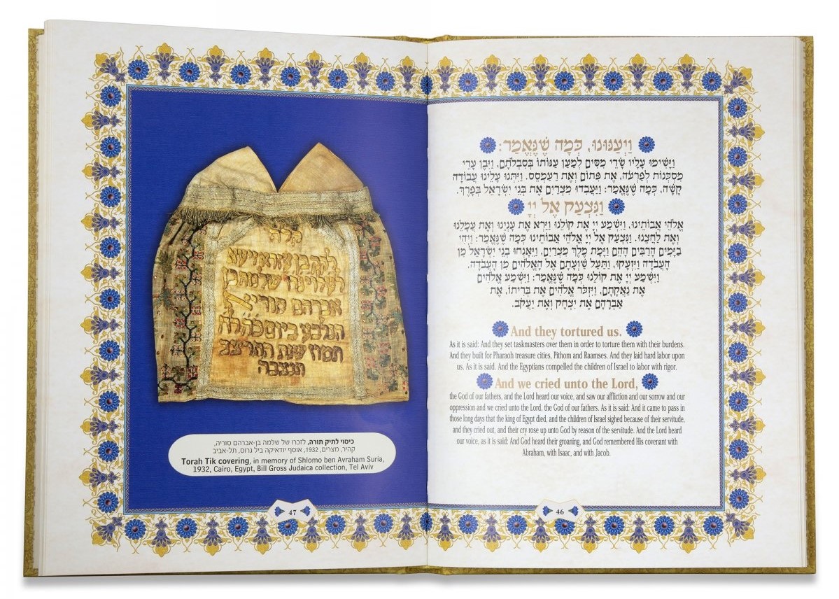 Inside the Alexandria Haggadah, showing a Torah covering from Egypt