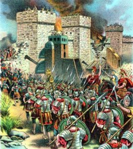 Yet sadly, the Jew’s rightful reign over Israel ultimately came to a bitter end when Jerusalem fell under siege first by the ancient Babylonian king, Nebuchadnezzar, and later, by the mighty Roman Empire. In both cases, following the breach of Jerusalem’s city walls, the First and Second Temples were plundered of their holy artifacts, set ablaze, and burned along with much of the city. Nearly all those who survived the vicious onslaughts were subsequently captured and forced into exile.