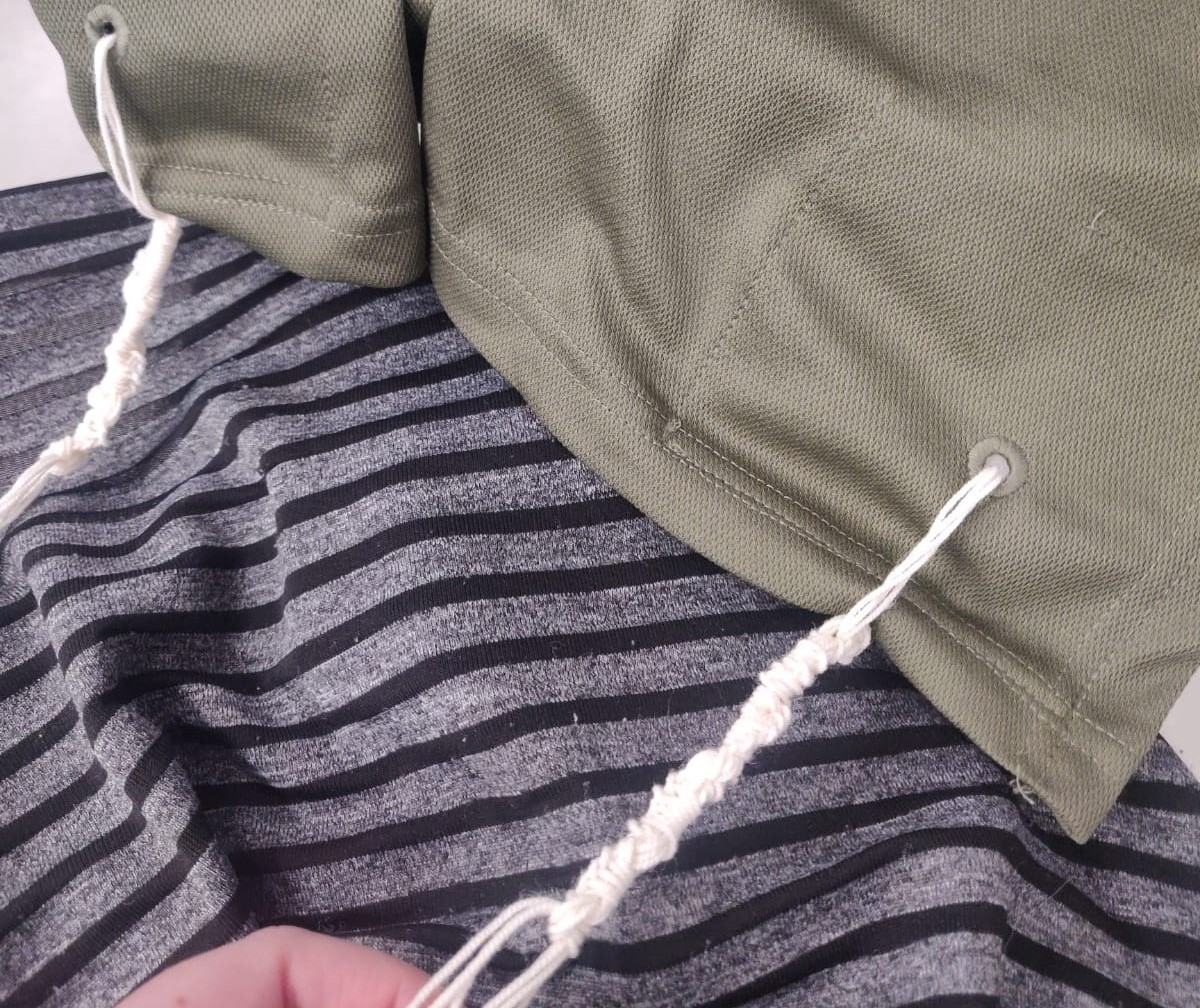 Tying tzitzit onto the corners of a military undershirt for an IDF soldier (Photo: Evelina Grezak)