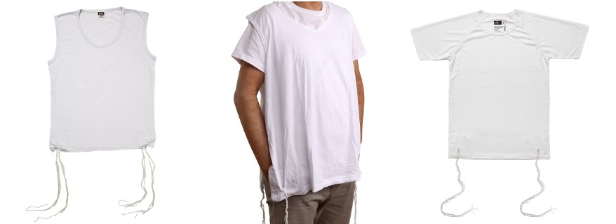 Examples of tzitzit undershirts, worn by some religious Jewish men and boys